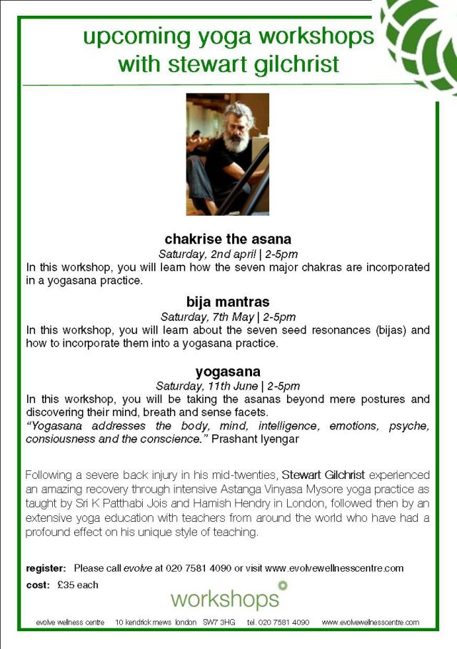 World Famous Stewart Gilchrist will be teaching two yoga workshops at Evolve Wellness Center in May + June…