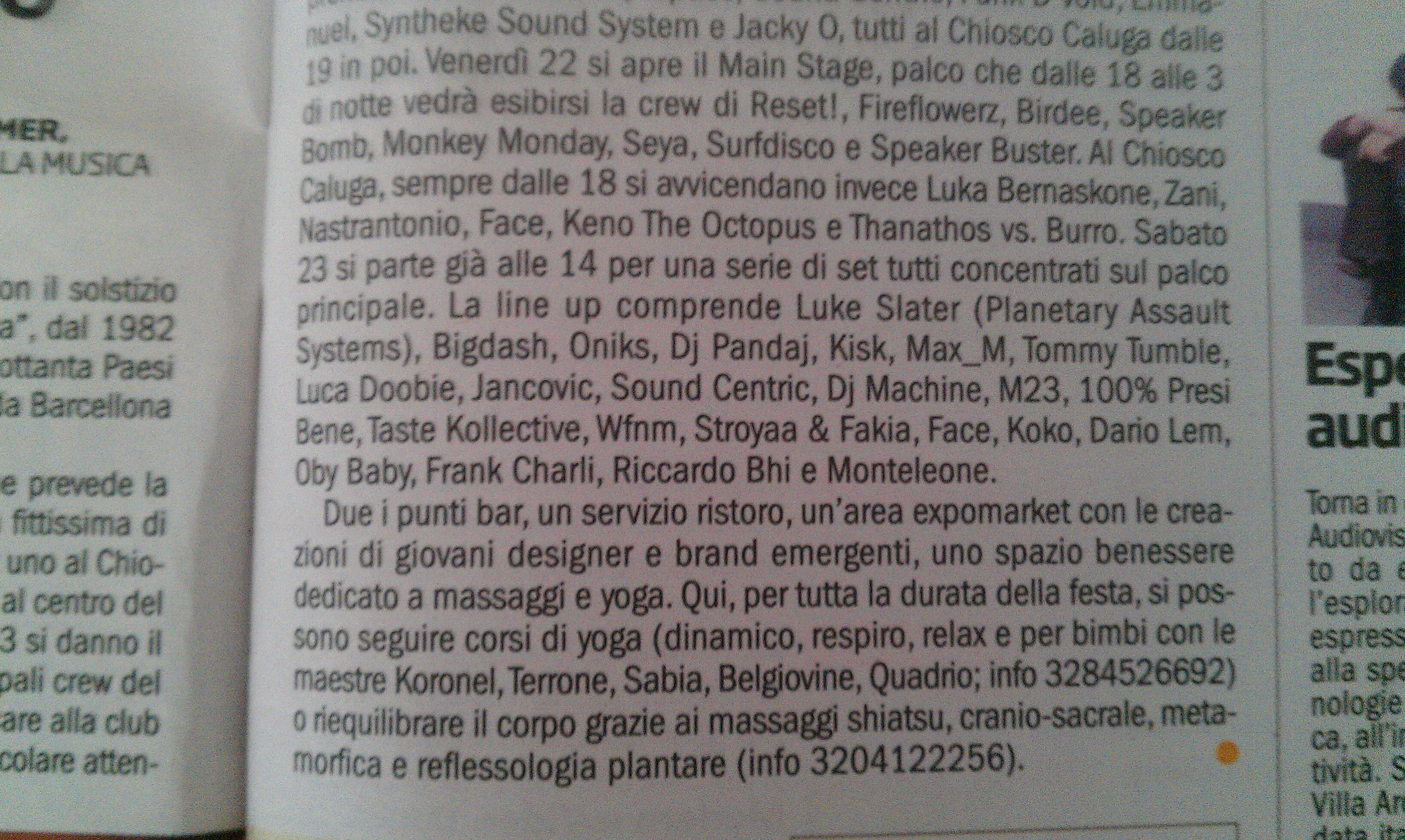 Here are photo’s of the article in found on the Festa della Musica – Milano 2012 in the magazine insert of a big newspaper in Italy, La Repubblica.