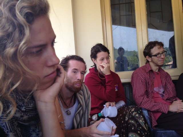 Getting ready for some Kriyas: Jala Neti, Sutra Neti and Vamana Dhauti!!!! Hence the worried look on everyone’s faces! 🙂