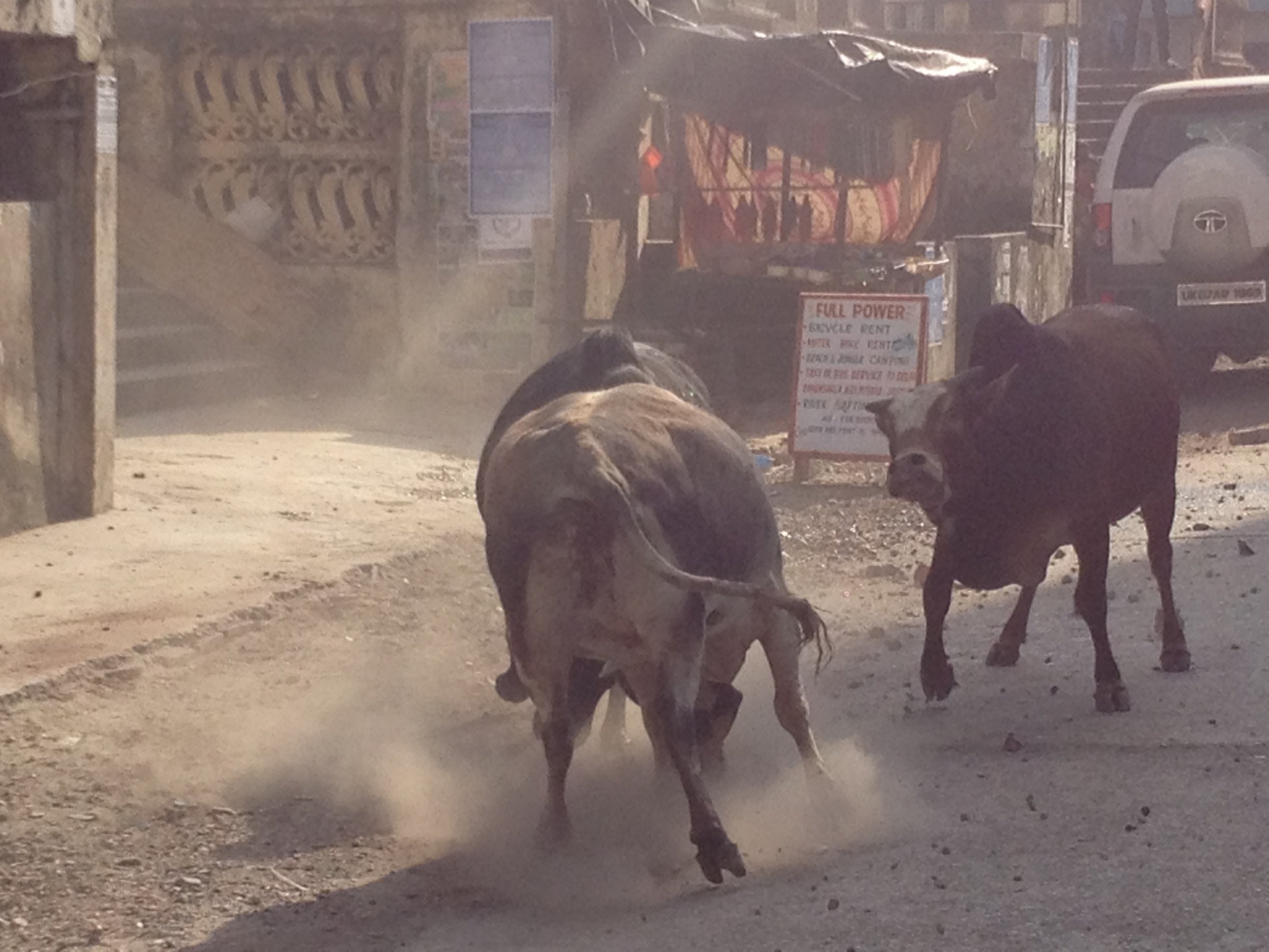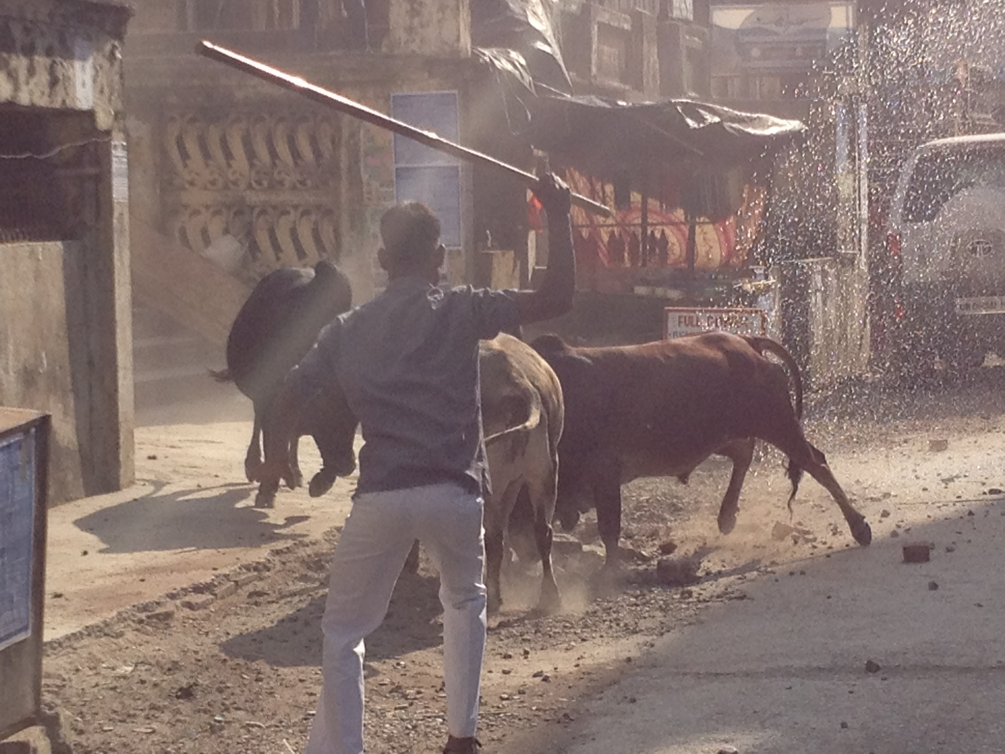 a bullfight began in the distance and slowly got closer and closer to us!
