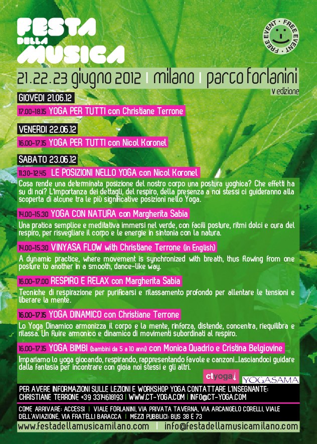 Festa Della Musica, Milano Italy – Yoga Flier (back)