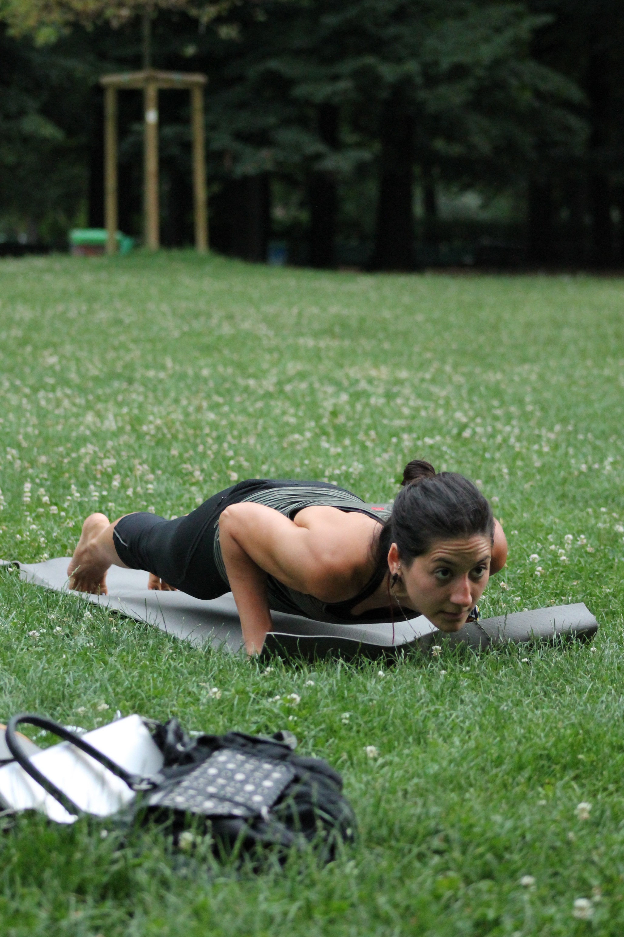 Teaching in the Park, Milan Italy – Chaturanga Dandasana